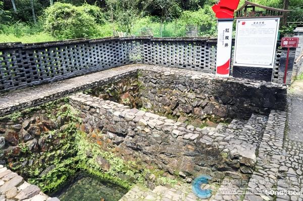 山风阵阵,雨打阳光落。青石铺就的小路引着我们沿枫树坪往南走,不过百米,到了钟家祠堂。两个并排卧着的小水井,嵌在祠堂左边的山冲下。井壁,鹅卵石光滑;井围,水泥板坚实;小木牌标注的“红双井”,支撑着一段又一段不朽的时光。我在井边驻足。井水清清婉婉,发出深蓝的幽光,一些凝在山间枝头的小雨珠溅落在水面上。历史长河奔流,井水竟似也潺潺,不觉然仿佛有锄锹撞击、战马嘶鸣、军民问答之声传来,声声经耳,渐入心田。